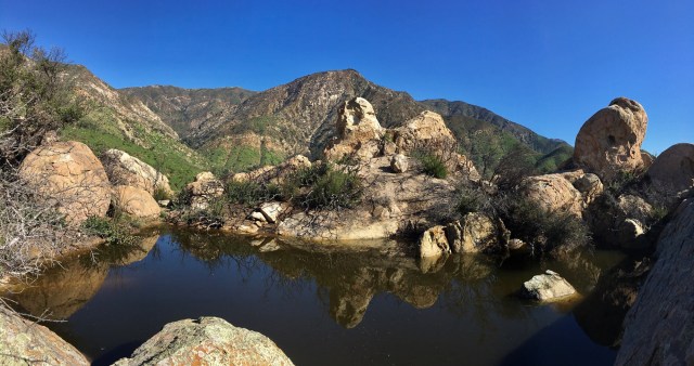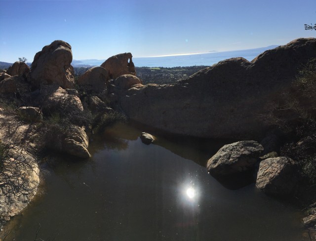 San Ysidro Tank is a vernal pond that sits high atop a rocky ridge hundreds of feet above the creek, just behind San Ysidro Ranch, at the mouth of the canyon on the west side. In drought years it does not fill up and sometimes remains dry through several seasons.