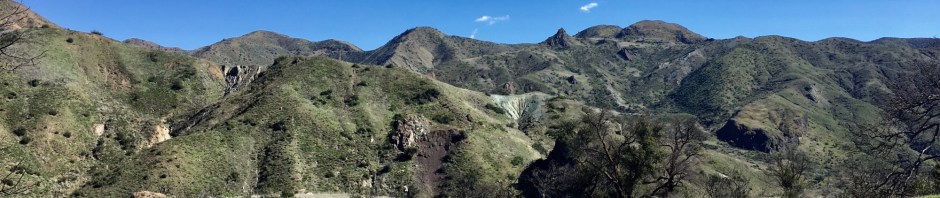 A seasonal brook runs down the mountain near the pool. A few oaks, coast live and blue, stand adjacent the pool on the grassy slope. The place looks a bit more scraggly and sparse than usual as it recovers from a forest fire. At the moment scores of chocolate lilies are in full bloom all over the area. At least one and possibly two Chumash habitation sites are located not far from the pool.