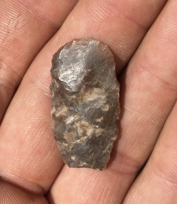 About three quarters of the artifact shown and it was no different to the unsuspecting eye than any of the thousands of other stones around, but my mind locked onto the thin flat bit of stone nonetheless, several feet away, amid a beach of gravel and cobblestone.