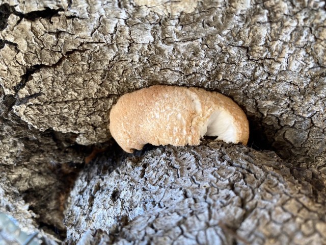 A pinch out of a lion’s mane mushroom found by my eight-year-old daughter on December 19 revealed pristine white flesh and a fruitful fragrance, despite the outer browning from no rain and low humidity. This mushroom was found on a tree standing all alone in a dry, sunblasted field of brown grass.