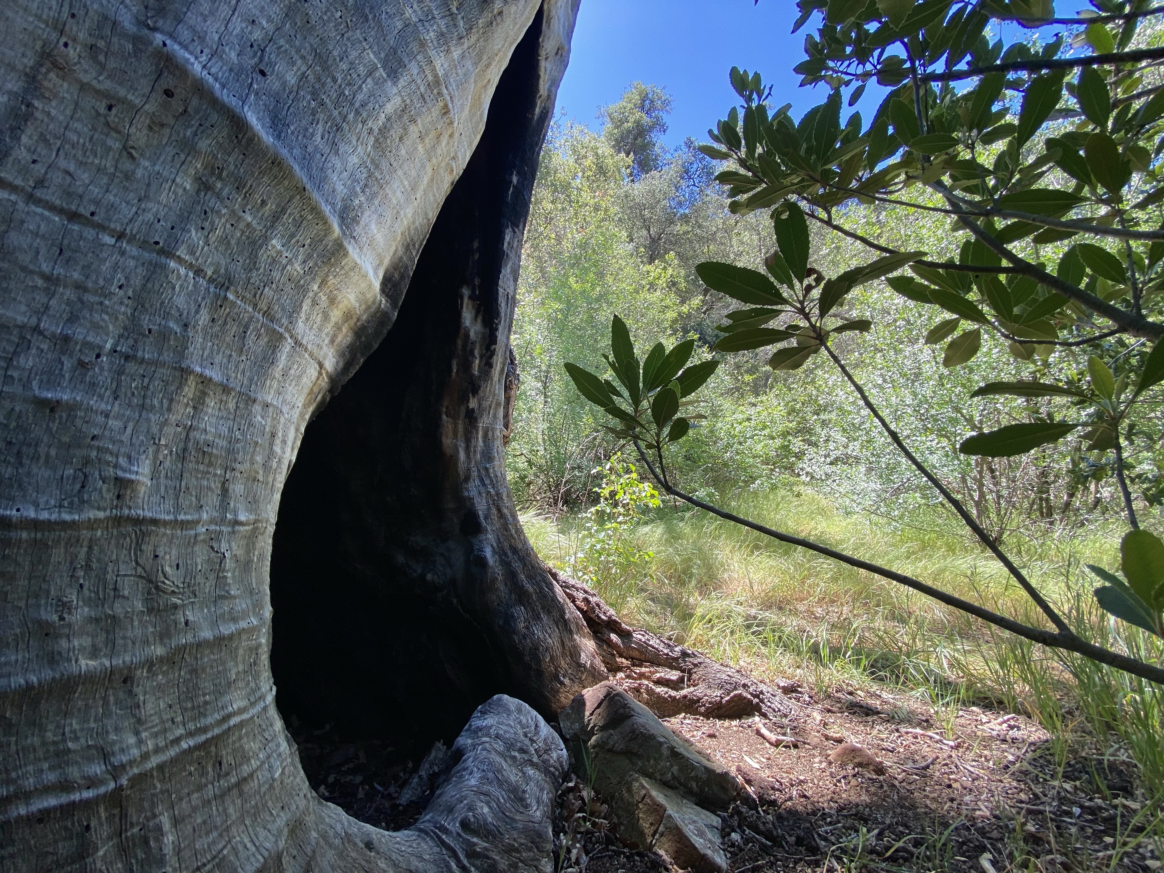 A large crack had ripped through the grey-white sapwood long exposed on one side of the tree, which is hollow at its base enough for a child or small adult to crawl into.