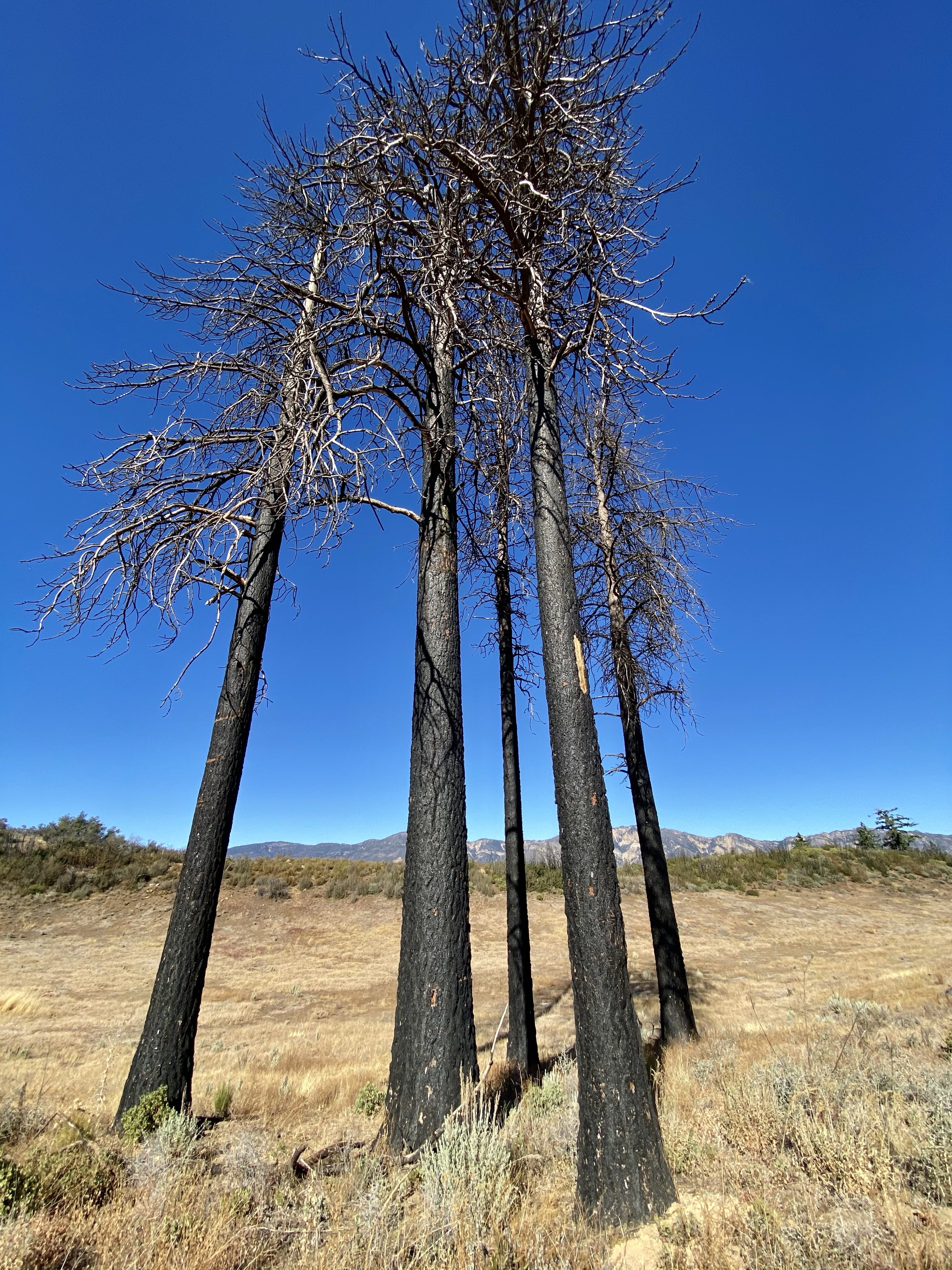 Like the death of the live oak of Mono Narrows Camp. The immolation by wildfire of the disjunct relictual stand of Ponderosa pine along Dry Lakes Ridge. And so too the palisades of tall timber that once stood around Happy Hollow atop Little Pine Mountain.