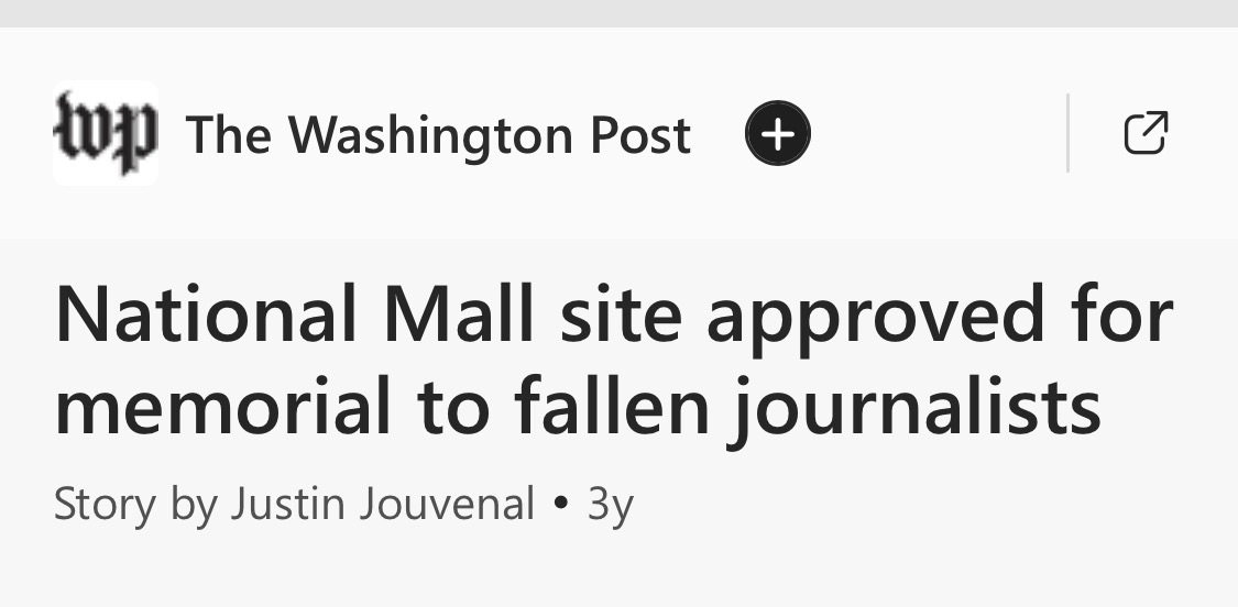 “National Mall site approved for memorial to fallen journalists