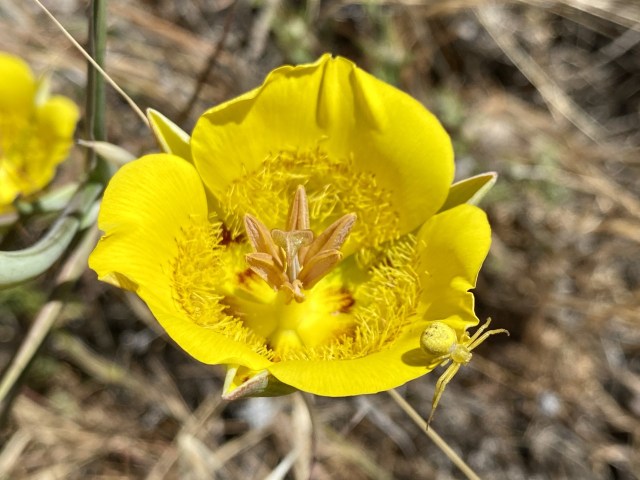 A crab spider on a yellow mariposa lily.